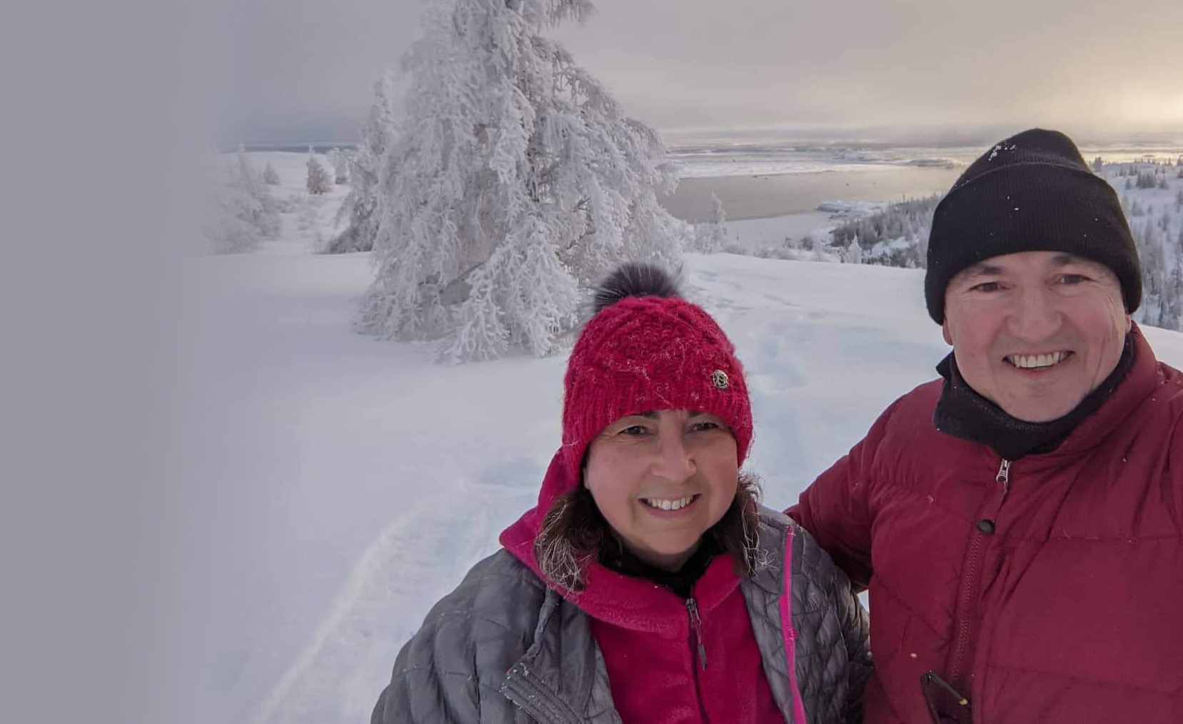 J’y ai rencontré l’homme de ma vie en 1997, Serge, tech. de labo. Nous avons quitté Kuujjuaq en 1998 pour y revenir en 2002... l’appel du Nord ! On s’est senti super bien accueilli par la communauté, c’était comme revenir à la maison. Je suis conseillère aux ressources humaines et Serge est assistant-chef au laboratoire médical. Certes le travail est très exigeant mais combien valorisant! Notre grande capacité d’adaptation, ouverture d’esprit et faculté d’être multitâches nous ont été primordiales pour faciliter notre intégration et notre longévité dans ce milieu de vie et de travail très différent de ce que l’on peut vivre au « Sud ». Maintenant à quelques années de prendre notre retraite, nous sommes fiers d’avoir contribué à l’évolution des services offerts par le CSTU. Pour notre part, c’est plus qu’une expérience, c’est une grande partie de notre vie que nous avons passée au Nord, quelle belle aventure!